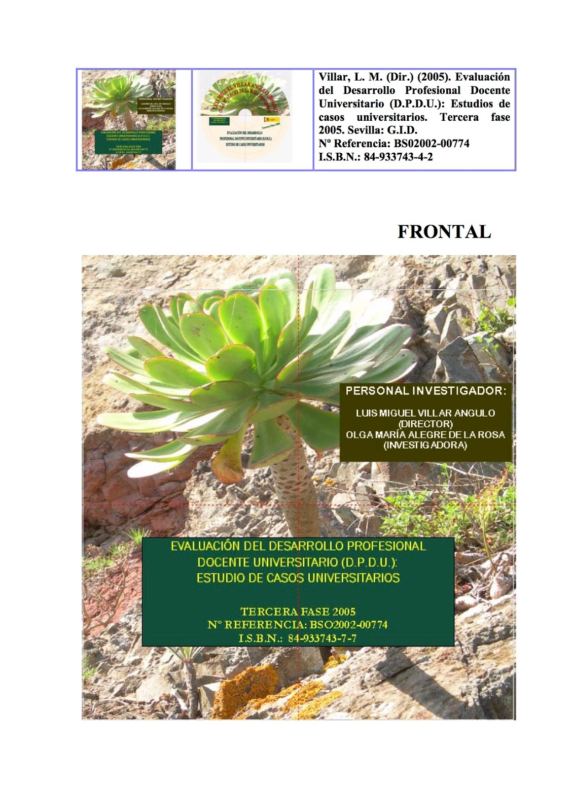 Villar, L. M. y Alegre, O. M. (Dirs.) (2005). Desarrollo Profesional Docente Universitario (D.P.D.U.). Sevilla: G.I.D. Plan Nacional I D I. Nº Referencia: BSO2002-00774. Plan de Formación del Profesorado Universitario en la Comunidad Autónoma Canaria 2004-2006. (I.S.B.N.: 84-934840-0-8).