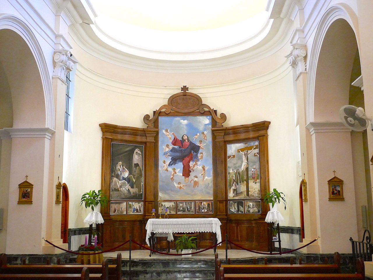 La calle comercial era de ronda y rueda alrededor de la Plaza. Me detuve brevemente en la Iglesia de Nuestra Señora de la Asunción adosada y conectada al Museo Municipal Casa Orduña. La entrada apuntada tenía un atisbo gótico, aunque su construcción era del Siglo XVIII (alguna piedra de cantería tenía grabada la fecha de 1753), remodelada en 1962. El templo tenía la originalidad de un campanario blanco enmarcado en una torre sobre una roca independiente del edificio eclesiástico.En el interior de la iglesia todo era eco de murmullo callejero. Nada de la arquitectura asombraba en los ojos: planta rectangular con tres capillas entre los contrafuertes, bóveda de cañón y ábside semicircular en la cabecera.